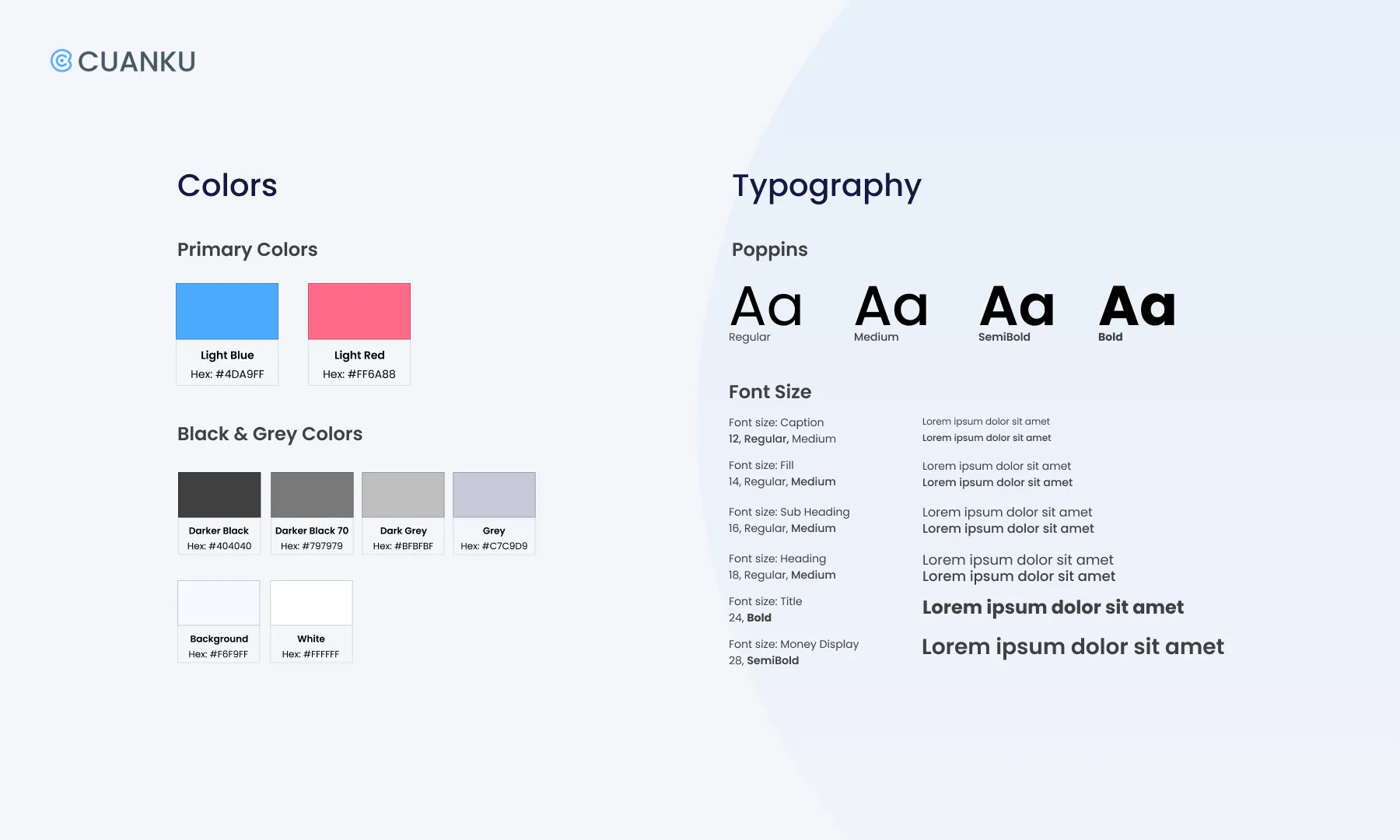 Before we continued to start working on the prototype, we set up the style guide for a simple logo, guideline and interface design. We use Blue as the dominant color which represents the financial application itself; trust, security & responsibility. Then we picked a lighter shade which gave us the persona of our participants due to the research.